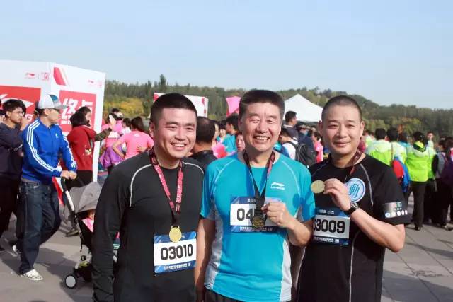 大家跑完全程,拿到屬于自己的榮耀獎牌,開心的一起拍照留念,快看我的土豪金獎牌(好帥~花癡臉ing~)